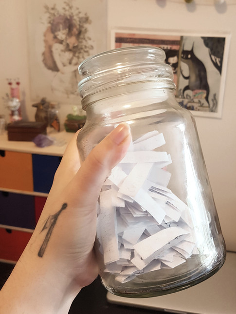 We tend to get ideas and longings for that wonderful time to work on dream projects whilst doing something else. Try as best you can to write down those ideas in the moment so you can return to them when you finally do get that precious creative time. It is of great benefit for when you acquire time to make, to have your ideas ready to go, that way your brain doesn't need to do mental gymnastics to think 'what do I want to make' and then stress because you can't think of anything worthwhile in that moment and the precious time gets wasted. Or worse, you rely on being inspired by other art that can result in work too heavily influenced by another, rather than a process of sharing your own voice. I highly recommend making a #creativecompassjar (a term coined by Rebecca Green), full of your ideas and dream projects and have it somewhere in the space you create. You can read Rebecca Green‘s bulletin no. 5 (http://myblankpaper.com/blog/2020/7/23/checking-the-compass) to get a more in depth process and reasoning behind why this is a great tool, and how the idea came about on her blog. On that note, having a challenge with a list to follow in this instance was so good for my brain to be able to focus on improving as there was no decision fatigue before starting the artwork; as the idea was already decided. That way I could focus on research and inspiration gathering whilst brainstorming ideas. Then my brain was relaxed and excited to start the final. And it could do the same for you if you go into it with clear intentions.